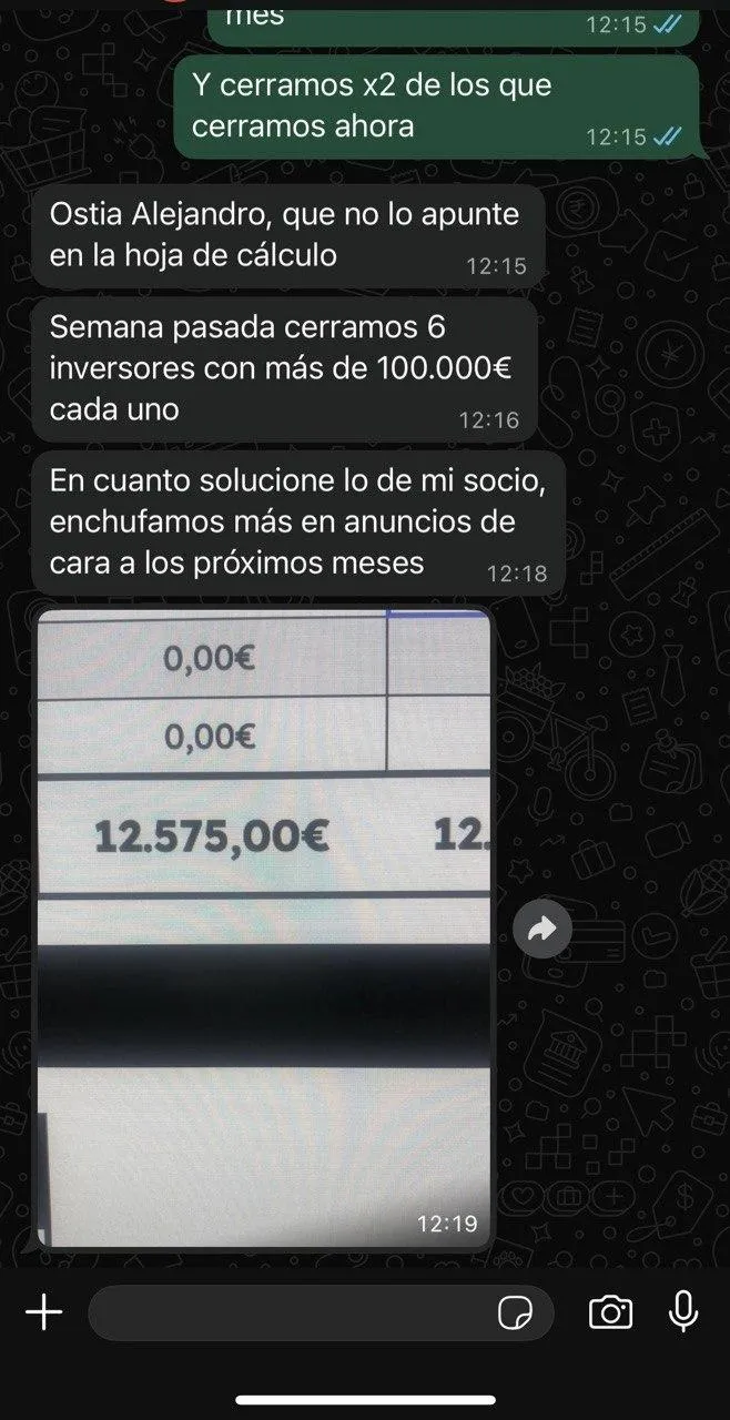 12.000€ en una sola semana con 1500€ invertidos en anuncios, su agenda esta llena de reuniones.